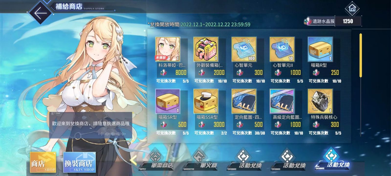 ※兌換時間為12月1日維護後至12月22日維護;聯動角色「科洛蒂婭‧巴蘭茨」最多可兌換5次