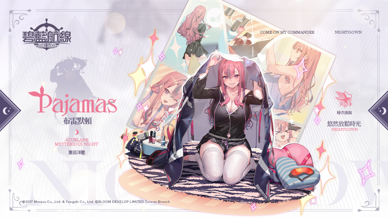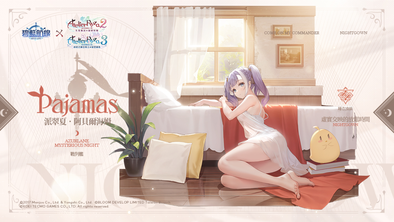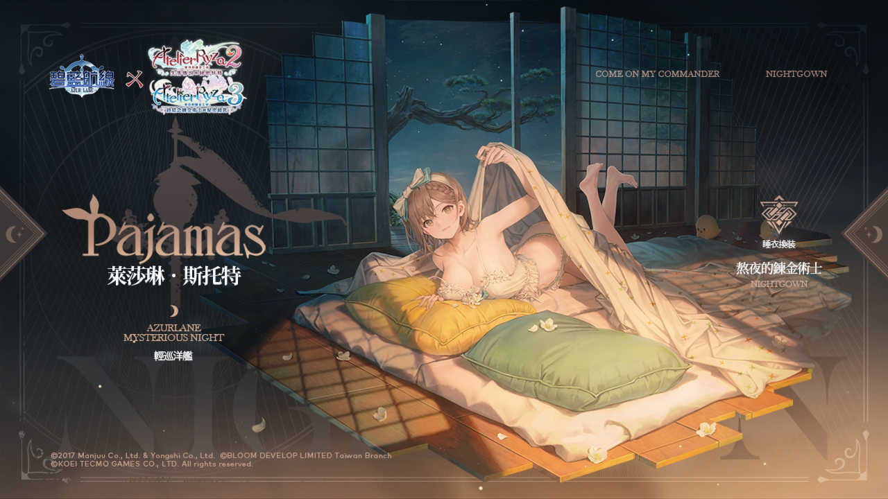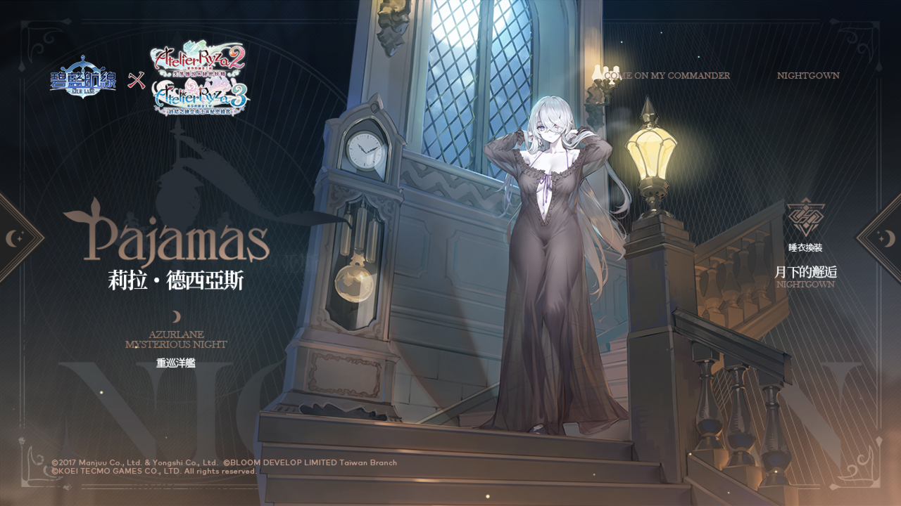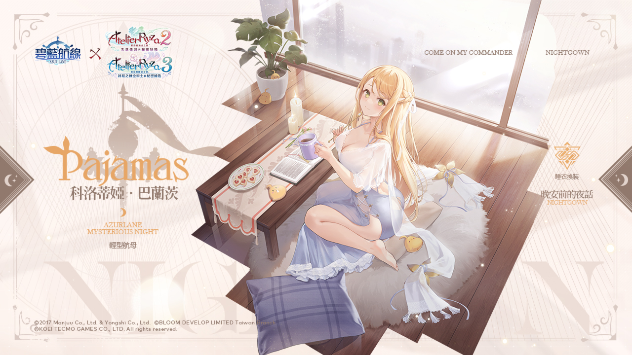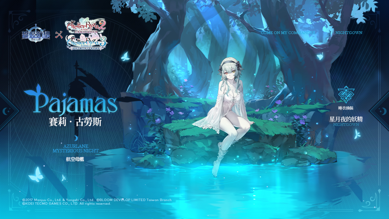 活動內容:布雷默頓【悠然放鬆時光】L2D、萊莎琳•斯托特【熬夜的鍊金術師】、科洛蒂婭•巴蘭茨【晚安前的夜話】、派翠夏‧阿貝爾海姆【虛實交映的放鬆時間】、莉拉·德西亞斯【月下的邂逅】、賽莉‧古勞斯【星月夜的妖精】換裝限時上架。