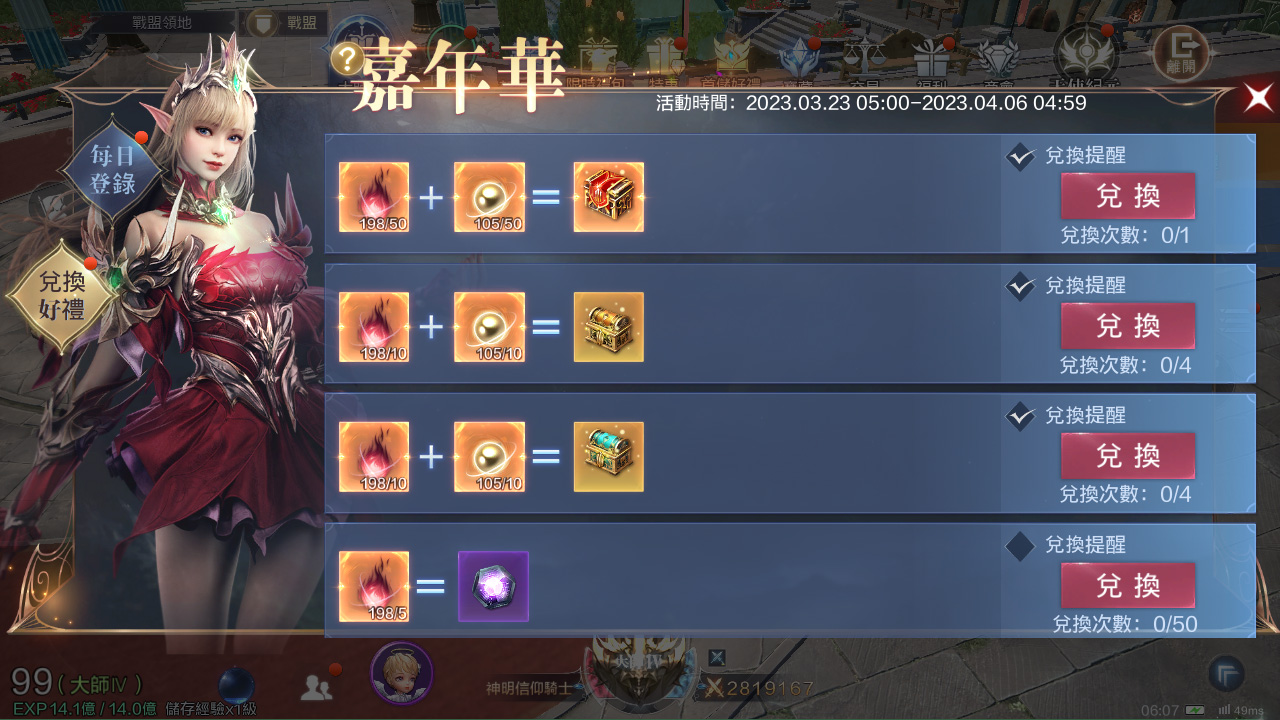 即日起至 4 月 6 日,玩家完成指定任務即可獲得兌換道具,可以兌換三種不同的禮包,禮包內含職業轉職卡、召喚卷軸、魔魂水晶自選箱、魔晶石、赤溶燃鐵、霧銀晶石...等各式稀有好禮!