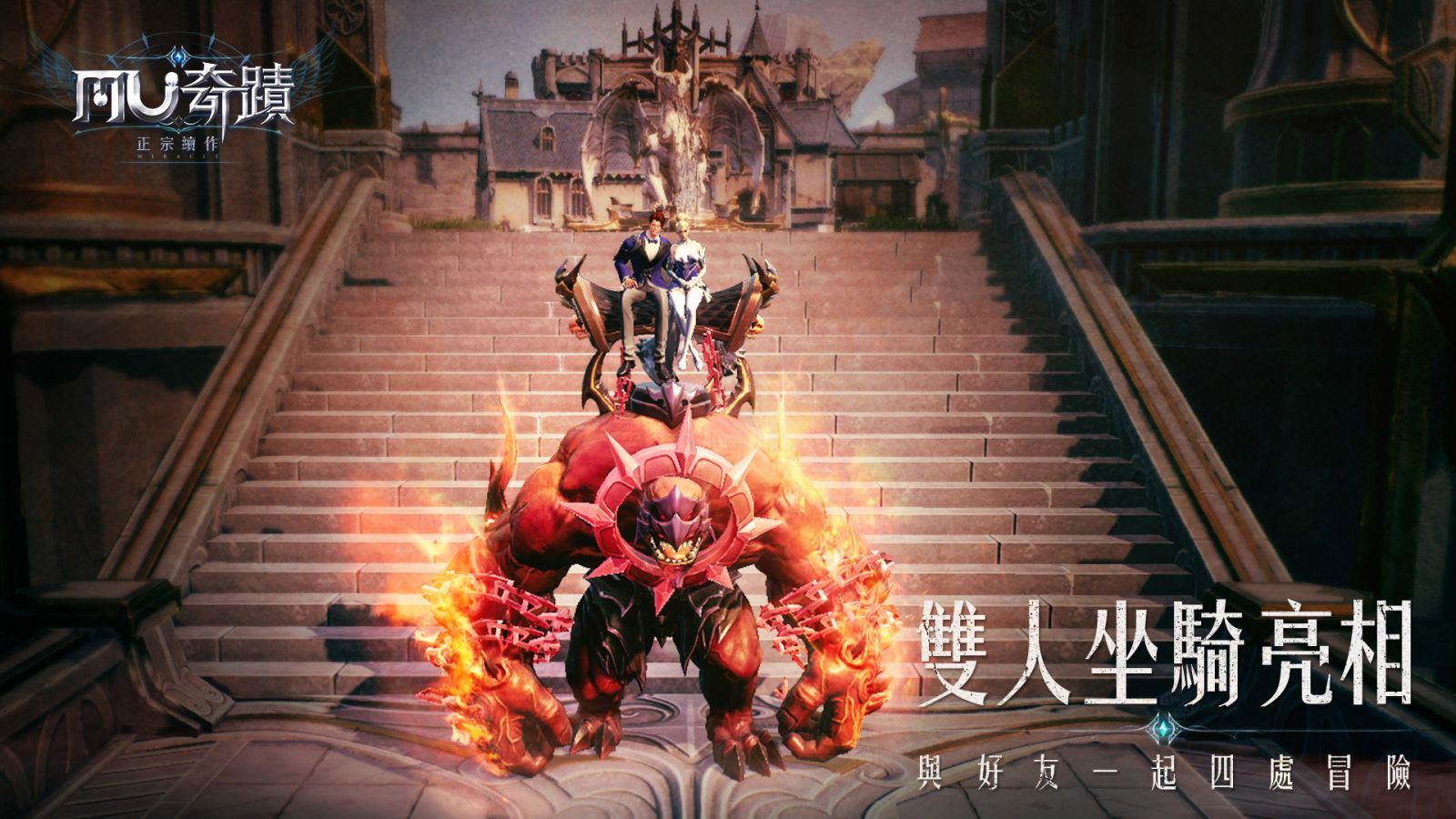 《奇蹟MU:正宗續作》釋出全新雙人坐騎系統,玩家可透過「邀請共乘」按鈕,邀請另一名玩家共乘,並由發起邀請的主騎乘者控制雙人坐騎,同乘的兩位玩家將會同步移動,共同遊歷奇蹟大陸!雙人坐騎分成陸行坐騎與飛行坐騎,將陸續登場,敬請期待!