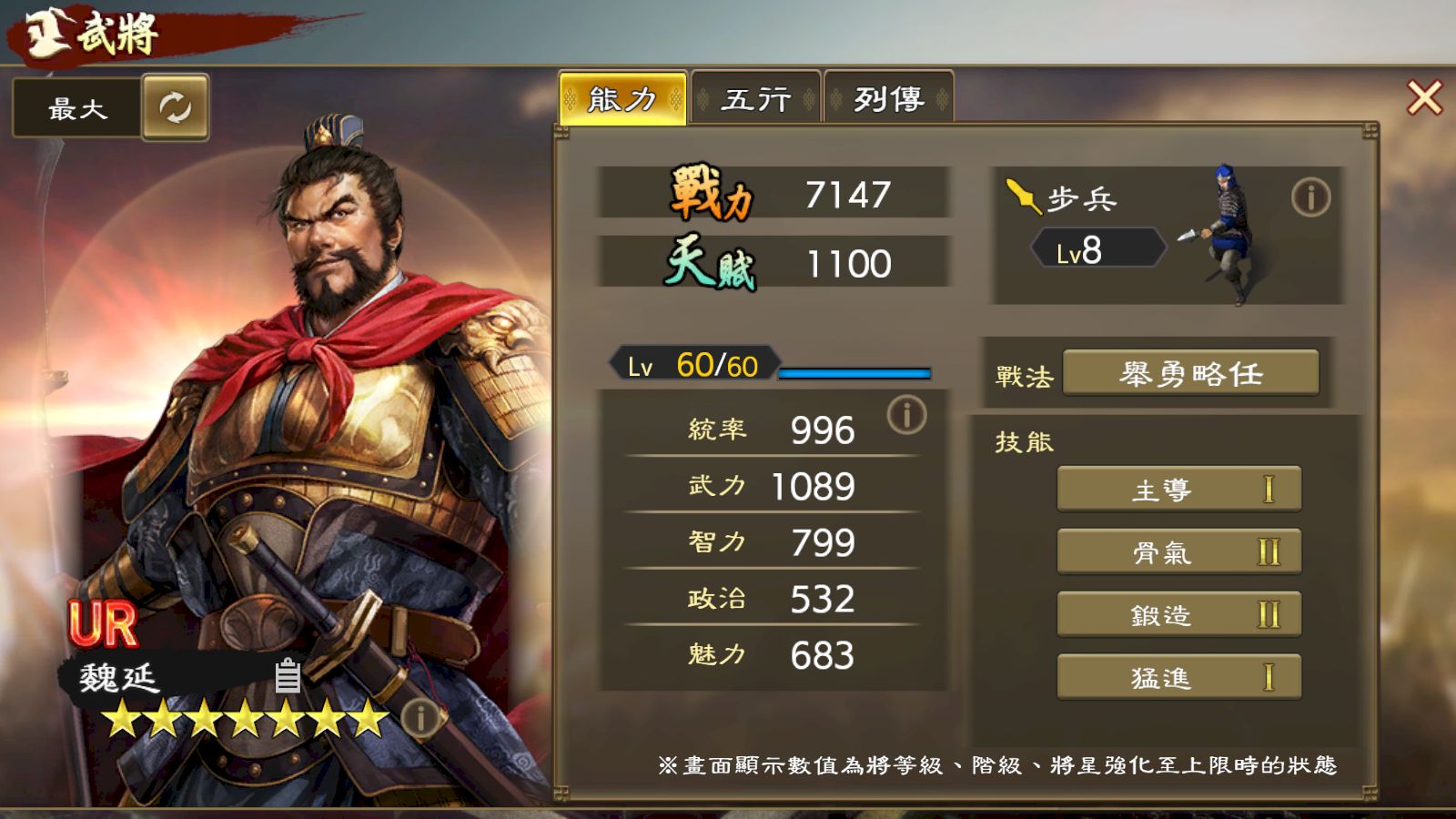 - 以固有技能「雪恨」為中心,駐軍建築每損失耐久將提升攻擊力,適用於駐 軍的編制。