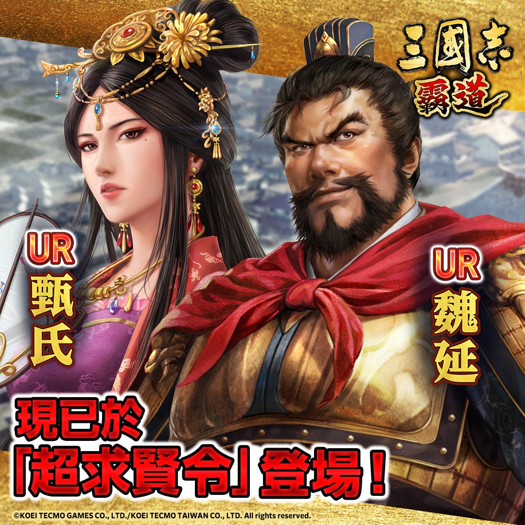 臺灣光榮特庫摩宣布,唯一由三國志系列之本家日本光榮特庫摩重磅推出 MMO 戰略模擬手機遊戲『三國志 霸道』於 5 月 25 日(四)進行遊戲更新,推出最新 最高稀有度的 UR 武將-UR 甄氏、UR 魏延登場。