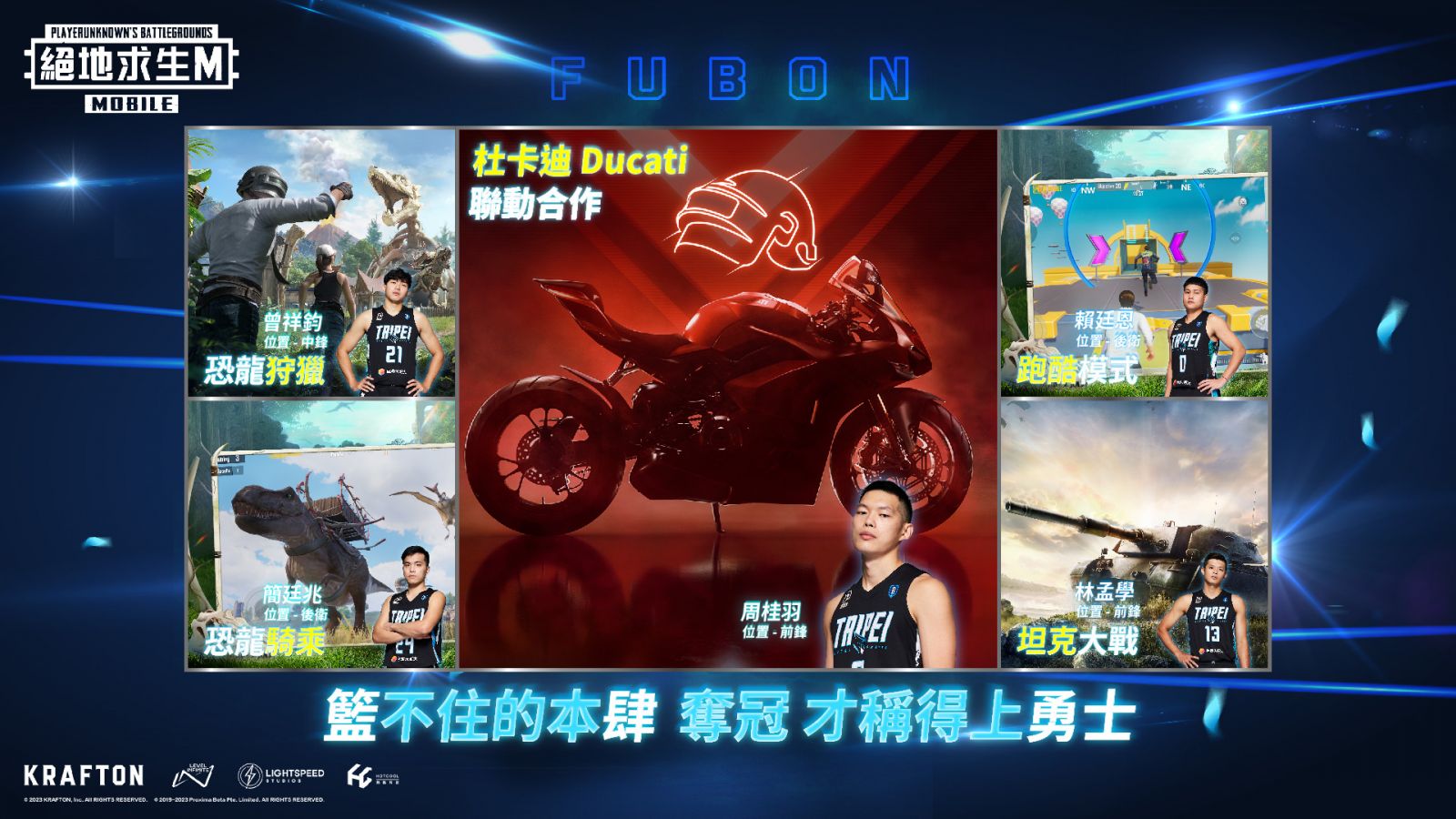 《PUBG MOBILE : 絕地求生M》台服四週年全新版本,推出五大亮點玩法,包括恐龍棲地中的【恐龍狩獵】、【恐龍坐騎】,和WOW模式的【坦克大戰】、【全新跑酷地圖】,以及【Ducati杜卡迪重機聯動】,分別邀請到臺北富邦勇士五位主力球員-賴廷恩、周桂羽、林孟學、曾祥鈞、簡廷兆進行體驗推薦,並拍攝合作影片。原本就是遊戲忠實玩家的球員們,與真人三級盔先生互動現場笑聲不斷,也親自示範五大亮點玩法。想看球員如何深入海島中的巨龍部落,擊敗史前巨獸,成為最強馴龍勇士嗎?或是騎著百萬重機,共四色經典Ducati杜卡迪車款飆速海島的帥氣英姿?更多球員體驗影片,近期即將公開!
