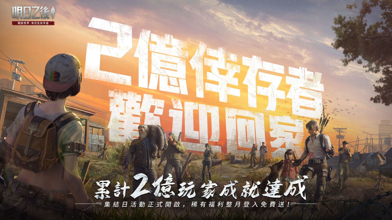 4年的光陰,《明日之後》持續累積玩家的信賴及支持,一步步達成全球累計2億玩家的成就。感謝每一位倖存者一路上相伴,「狂歡慶典月」已正式開啟,多項福利活動重磅登場!這趟末世之旅,希望能和你們繼續走下去!也請持續關注《明日之後》官方FB粉絲專頁,一同迎接全新末日生存體驗!