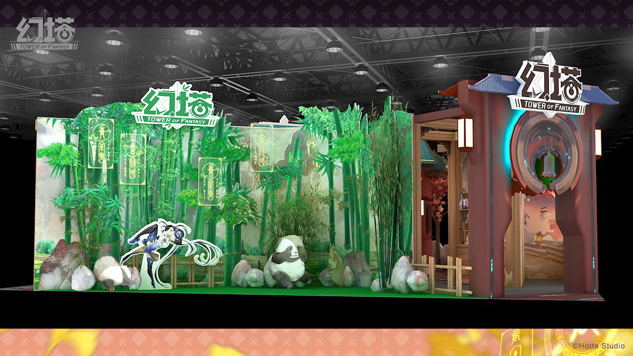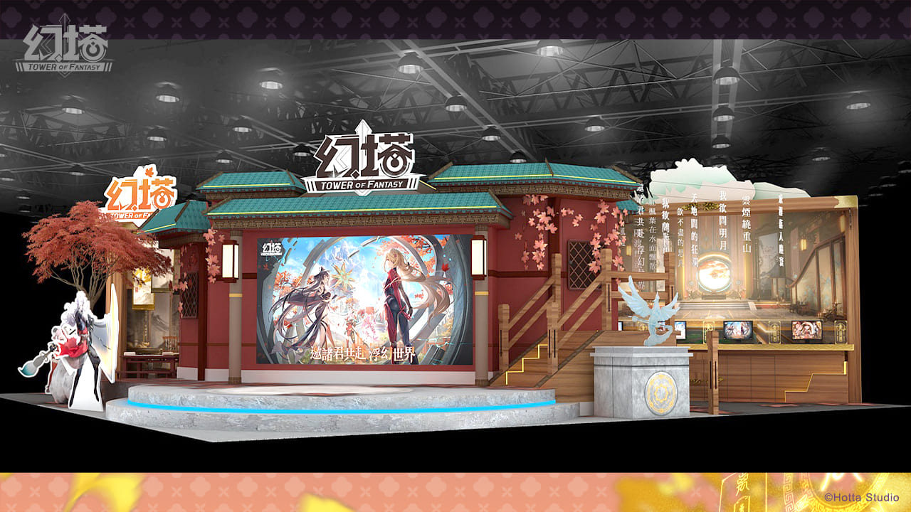 《幻塔》展區攤位以全新3.0版本-九域時空為設計背景,讓拓荒者彷彿身處於遊戲場景中,感受九域時空的縹緲仙氣!主舞台及試玩區以九域時空中的經典場景-離州府為主題,邀拓荒者走入富麗堂皇的離州府,身臨其境般感受九域時空的魅力!