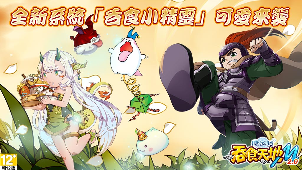 全新系統「吞食小精靈」可愛來襲,各式各樣的小精靈將會陸續現身吞食大陸,每隻小精靈都擁有不同的「基本效果」和「特殊效果」,基本效果可提升經驗加倍,特殊效果則可提高玩家能力值,玩家可根據自己的需要來選擇合適的小精靈。