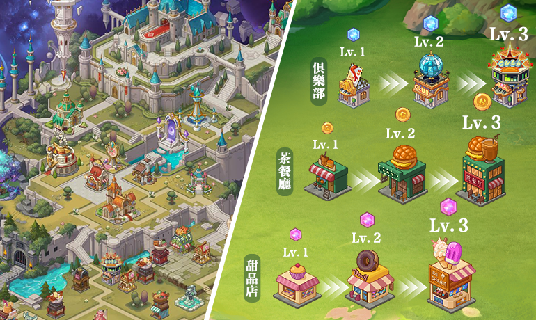 在主城內建造俱樂部,不僅可以為你的遊戲角色帶來娛樂,消失戰鬥所帶來的疲勞,還會為你帶來鑽石上的收益。