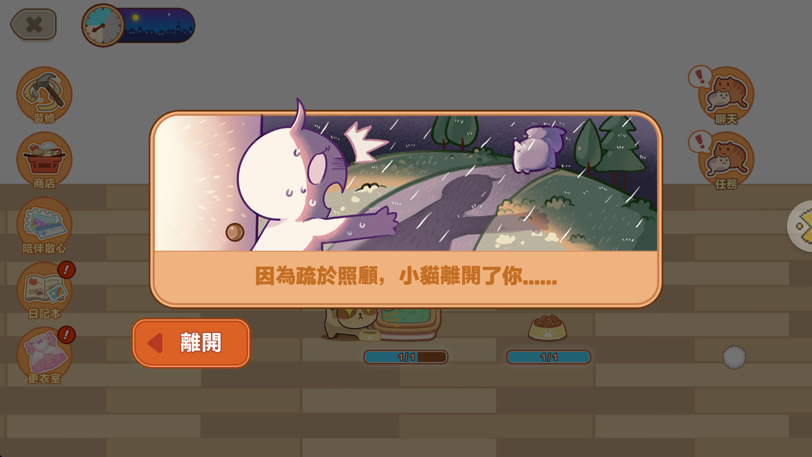 別忘了,下線時貓咪依舊在等你回來~若太久沒有理牠們,可是會鬧脾氣甚至離家出走的喔!